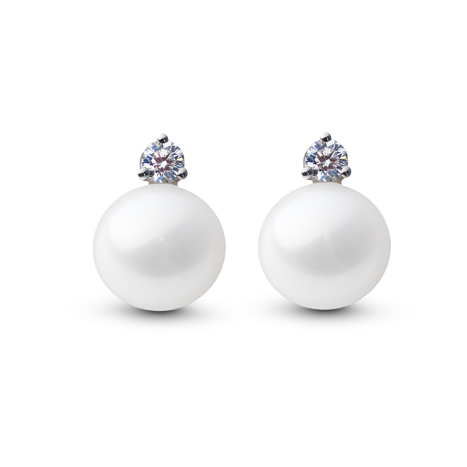 Örhängen ”Is pärla” med 2 sötvattenspärlor 8,5 mm och 2 st briljanter 0,20 ct totalt. Diamantkvalitet TW/VS.